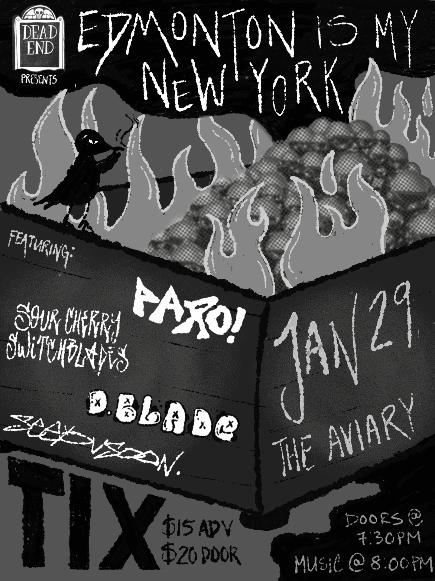 Dead End Zine Launch w. paro!, Sour-Cherry Switchblades, D. Blade & seeyousoon @ The Aviary!